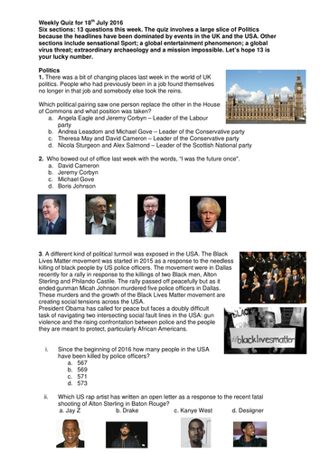 Current Events Trivia Questions 2016 - These are 70+ current events trivia questions and answers for you.. Our online current event trivia quizzes can be adapted to suit your requirements for taking some of the top current event quizzes. Answer all the questions below and then click on correct the quiz to get your score. See how many of these 10 questions you can get right. Which news outlet has issued major corrections, admitting its reporting on the. Come back next week for new questions to the weekly quiz.